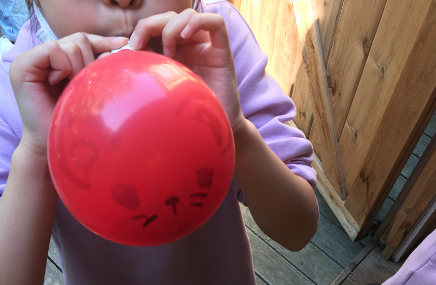 1回目はちょっと硬いので子どもでは上手く膨らまないこともあります。その場合は、大人の方が一度膨らましてあげましょう!そうすると、2回目からは子どもでも風船を膨らましやすくなりますよ♪