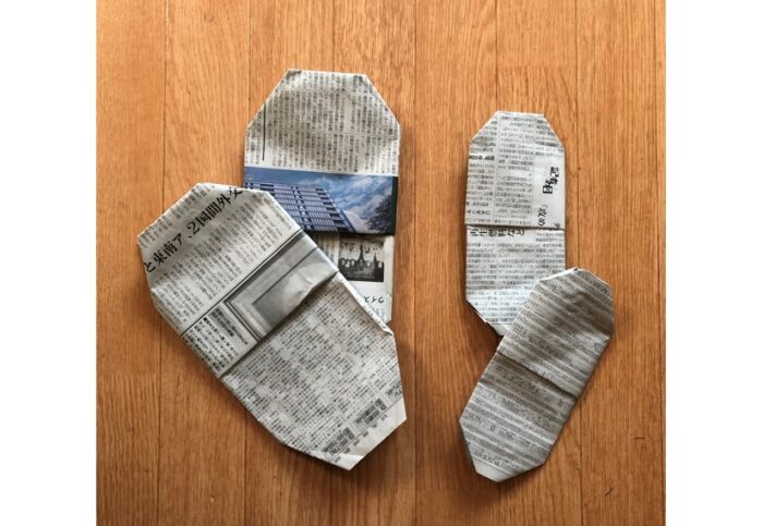 【新聞紙で作る簡易スリッパ】の作り方