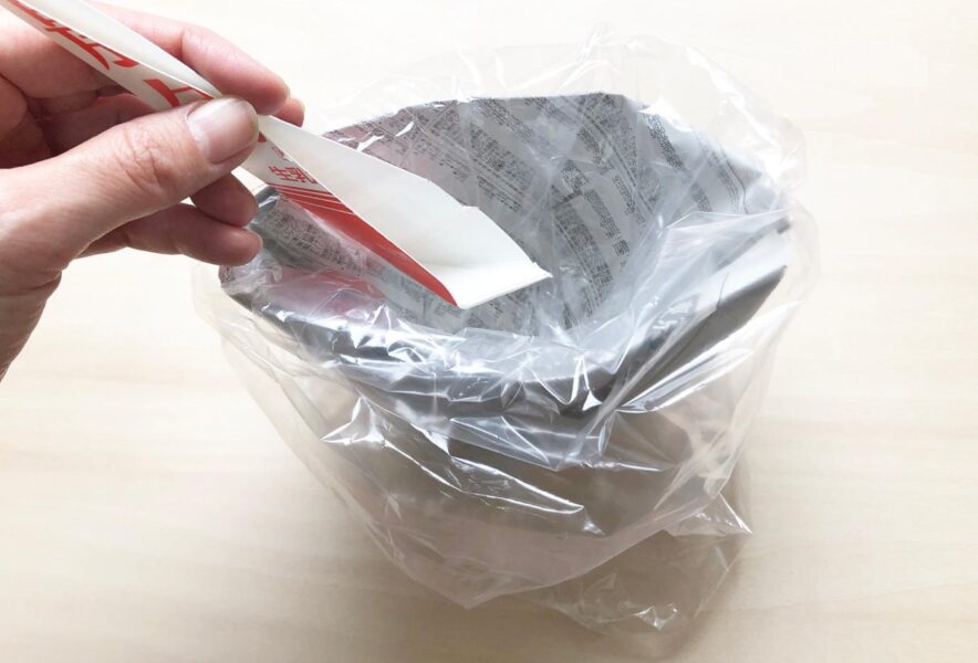 ⑩ 最後に新聞紙コップにビニールをかけよう!