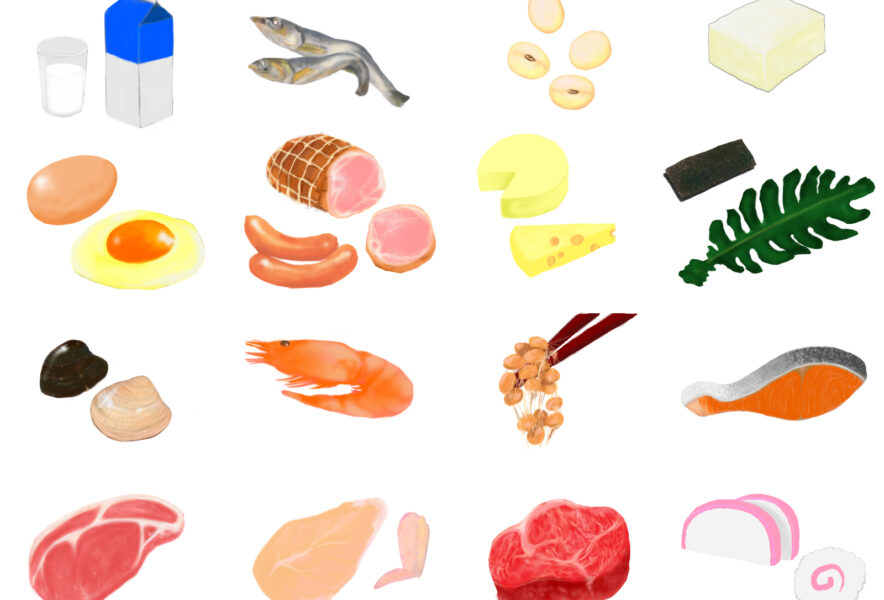 肉、魚、卵、牛乳などの乳製品に多く含まれていますが、脂肪やコレステロールも多く含まれているので、摂り過ぎには注意が必要です。