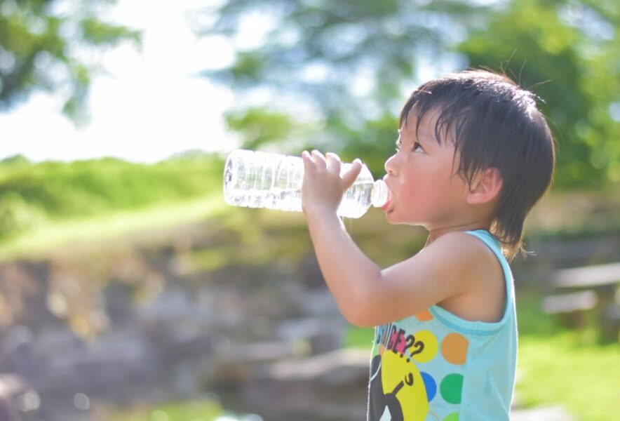 また幼児は1日体重1kg当たり100mlが必要です。例えば10㎏の子供なら1000mlが1日の必要水分量です。体は小さいですが水分必要量が多いのが特徴です。